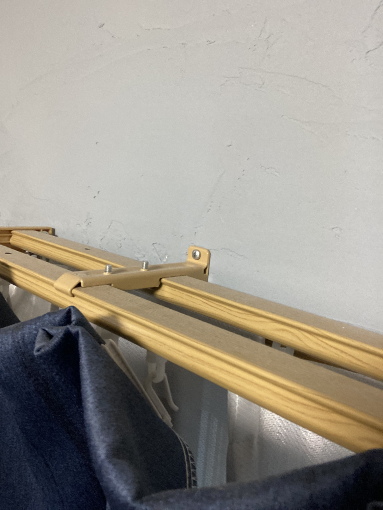 施工した壁には、釘やネジを打つこともできます。下の写真は、施工した壁にネジでカーテンレールをつけたものです。