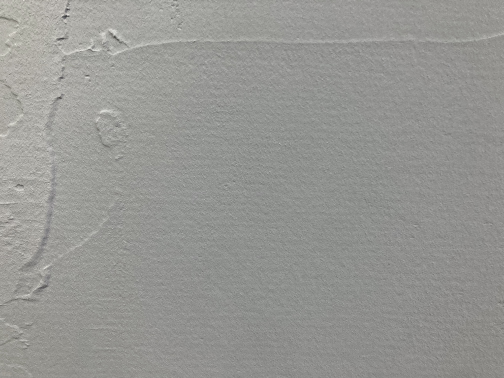 凸凹がある壁紙に塗る場合、塗料の量が少ないと、乾いたあとに表面がデコボコになってしまいます。下の写真のような感じです…。